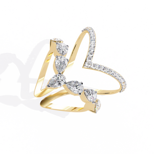A stunning 14K open ring designed with graceful curves and sparkling pear-shaped diamonds forming butterfly-inspired accents. The delicate pavé diamonds add a touch of shimmer, making this piece a perfect symbol of elegance and freedom.