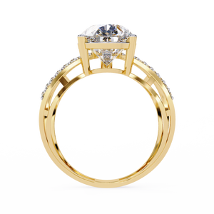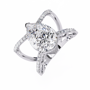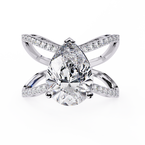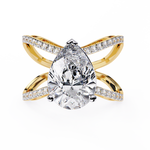 This 14K Pear Diamond Criss Cross Engagement Ring features a dazzling pear-cut center diamond beautifully set atop a split shank band lined with pavé diamonds. The elegant criss-cross design enhances brilliance and adds a modern twist to timeless romance, making it a perfect symbol of love and sophistication.