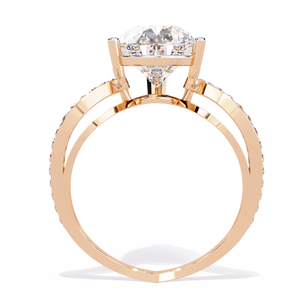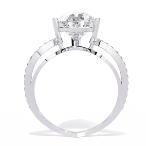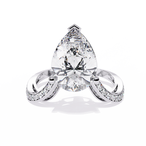 This 14K Pear Diamond Split Shank Engagement Ring exudes sophistication and modern allure. The pear-shaped center diamond sits elegantly atop a graceful split shank adorned with pavé-set side stones, adding brilliance from every angle. A perfect blend of bold design and timeless romance for the modern bride.