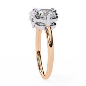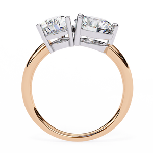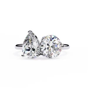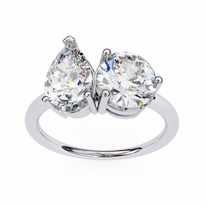 This stunning 14K Toi et Moi engagement ring showcases a pear and round diamond set side by side in perfect harmony. The elegant open design symbolizes two unique souls coming together, offering a timeless and romantic expression of love and unity.