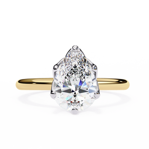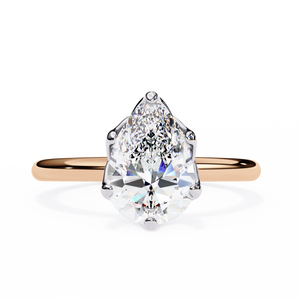 This elegant 14K diamond engagement ring showcases a stunning pear-shaped center stone, beautifully set in a classic solitaire design. The graceful teardrop shape symbolizes love and new beginnings, while the polished band enhances its brilliance. Perfect for brides seeking a timeless yet distinctive style, this ring radiates sophistication and everlasting beauty.