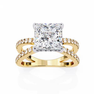 Make every moment unforgettable with this 14K Princess Cut Split Shank Engagement Ring. The elegant split band is lined with brilliant round accent diamonds that enhance the radiance of the center princess-cut stone. Crafted with exceptional precision and a graceful open design, this ring symbolizes strength and everlasting love a modern yet timeless statement of devotion.