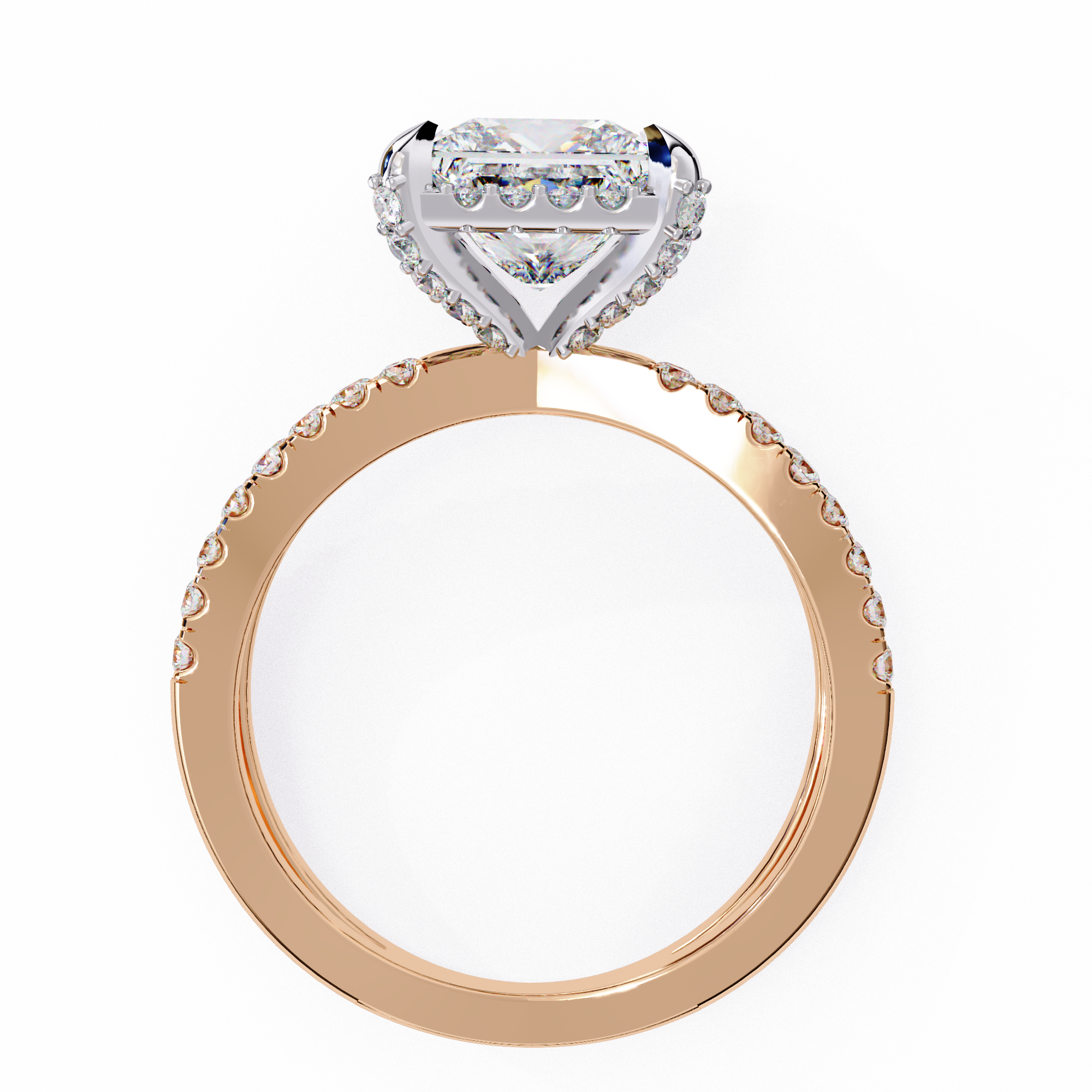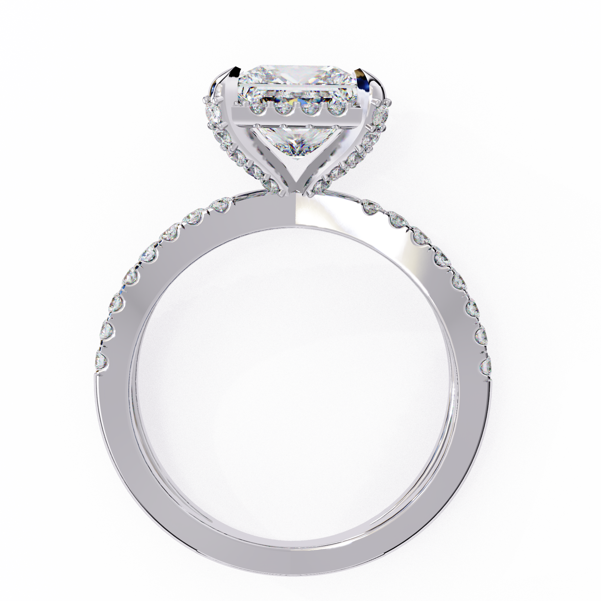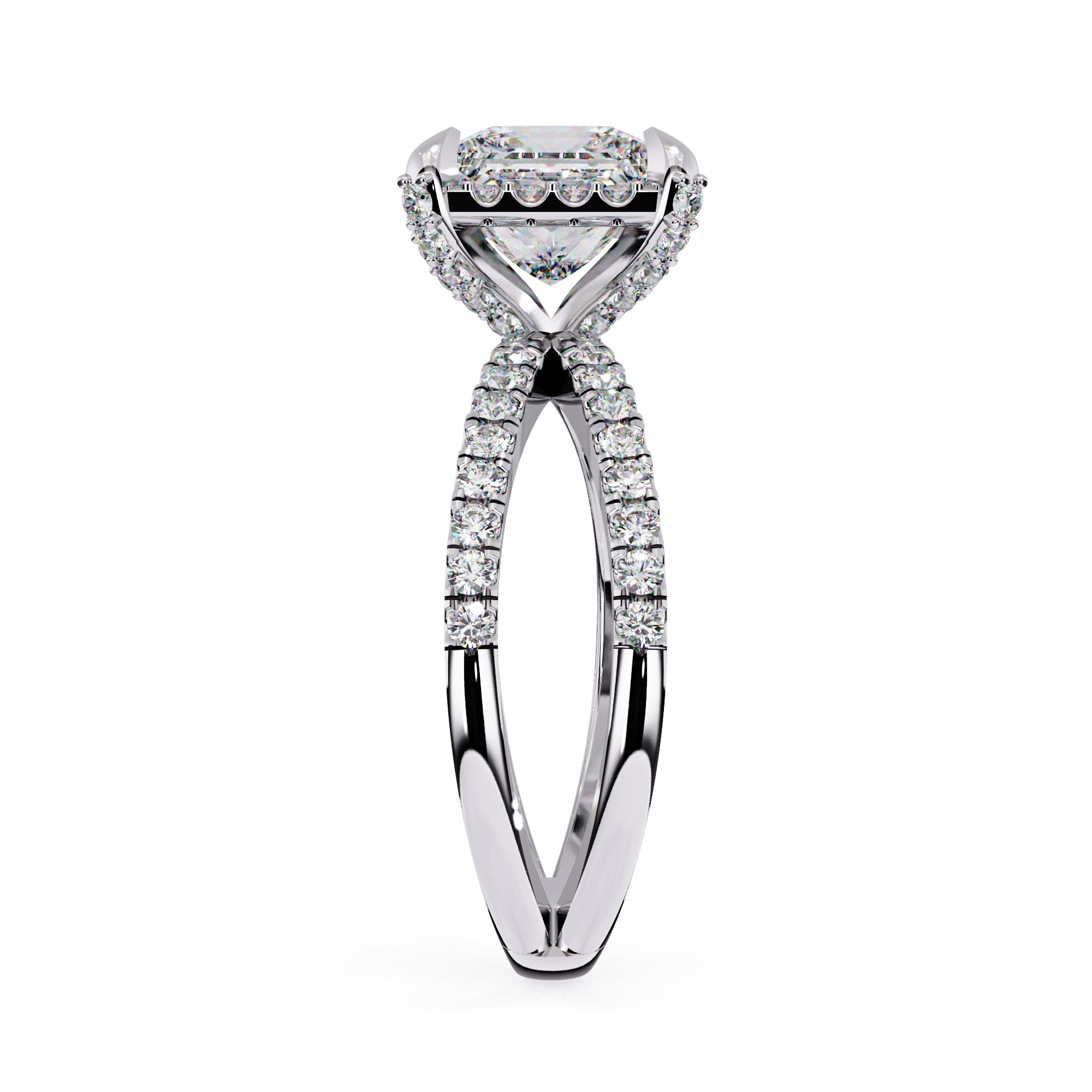 This elegant 14K diamond engagement ring features a radiant princess-cut center stone framed by a glittering halo for extra brilliance. The split shank band is adorned with pavé-set round diamonds, enhancing the ring’s sparkle and adding depth to its design. Crafted to perfection, this ring blends timeless luxury with modern sophistication — an unforgettable symbol of everlasting love.
