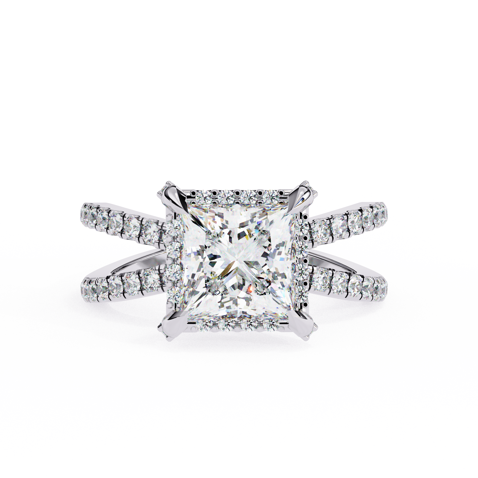 Reverra 14K Princess Halo Split Shank Diamond Engagement Ring, CTTW-2.22