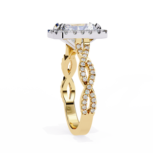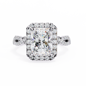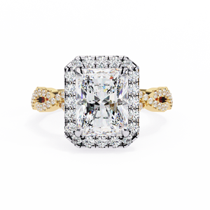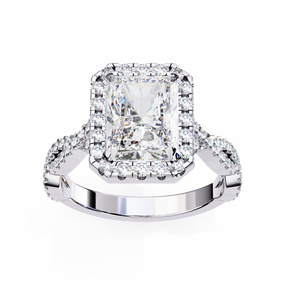 This 14K Radiant Cut Twisted Halo Diamond Engagement Ring is a perfect fusion of brilliance and artistry. The radiant-cut center stone is encircled by a shimmering halo, enhancing its fire and luminosity. The twisted pavé band symbolizes two lives beautifully intertwined, adding depth and romance to its design. Crafted for lasting beauty and meaning, this ring represents eternal love sophisticated, sparkling, and unforgettable.