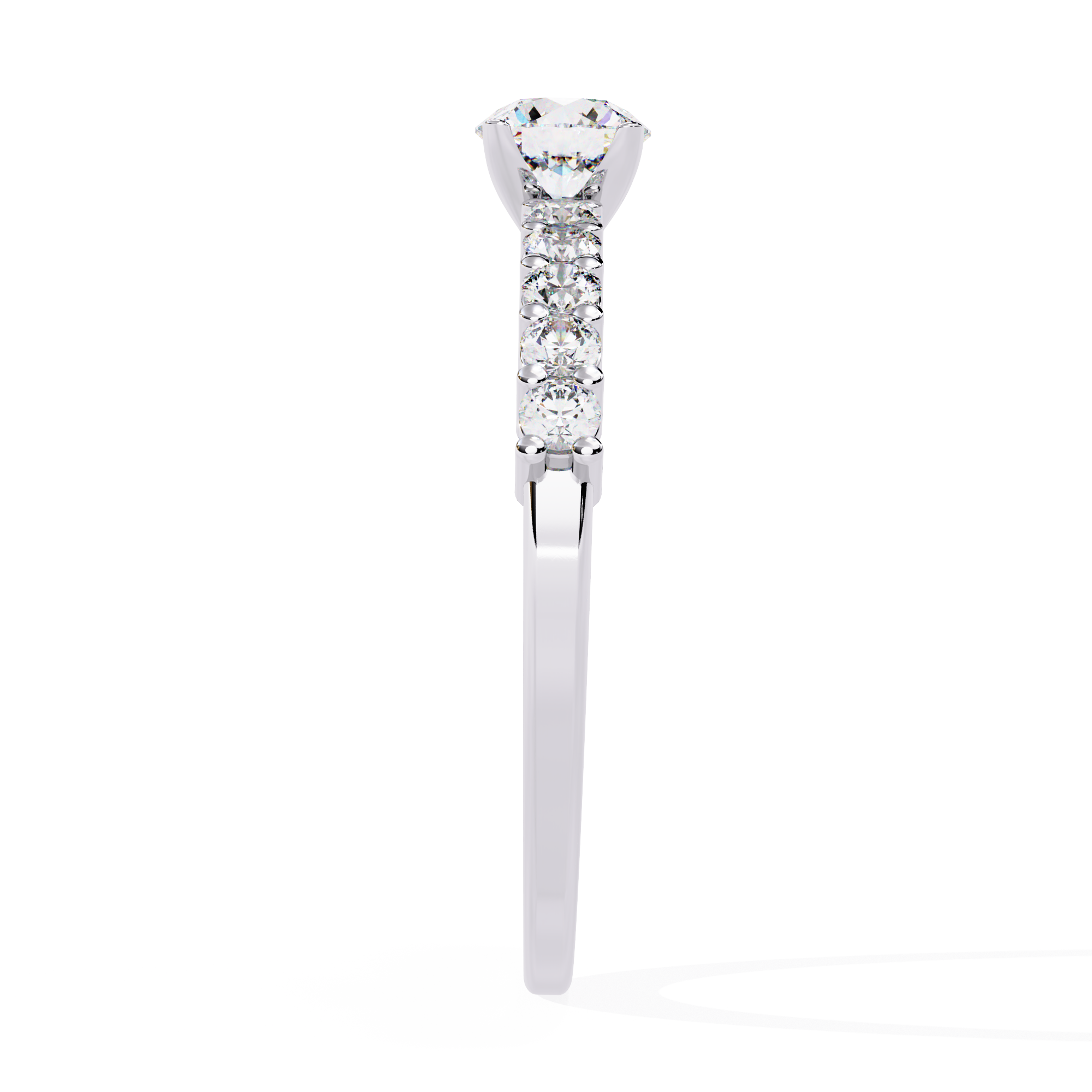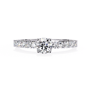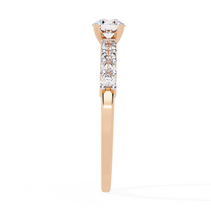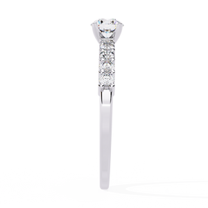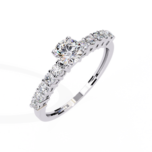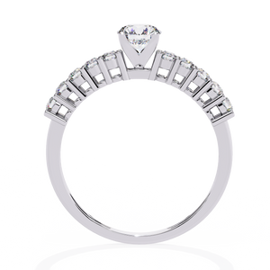 This 14K Round Diamond Classic Engagement Ring showcases timeless beauty with a brilliant round center stone and sparkling side diamonds set along the band. The elegant prong setting maximizes light reflection, creating exceptional brilliance. Perfect for brides who cherish simple sophistication and everlasting sparkle.