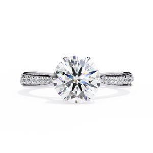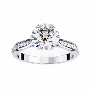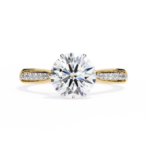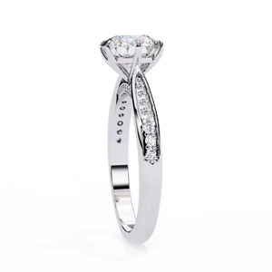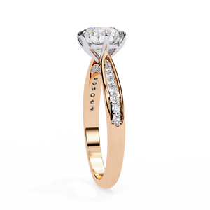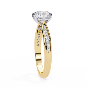 This 14K engagement ring showcases a brilliant round lab-grown diamond gracefully set on a split-shank band with shimmering side stones. The elegant open design enhances light reflection, creating a breathtaking sparkle a perfect symbol of timeless love and sophistication.