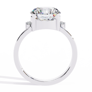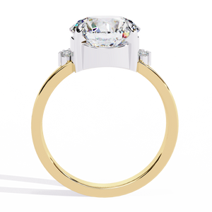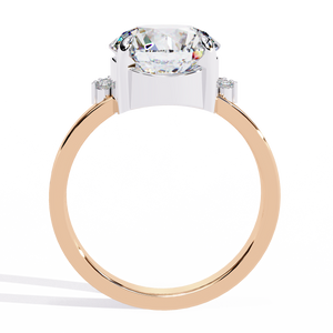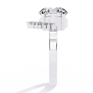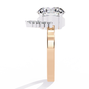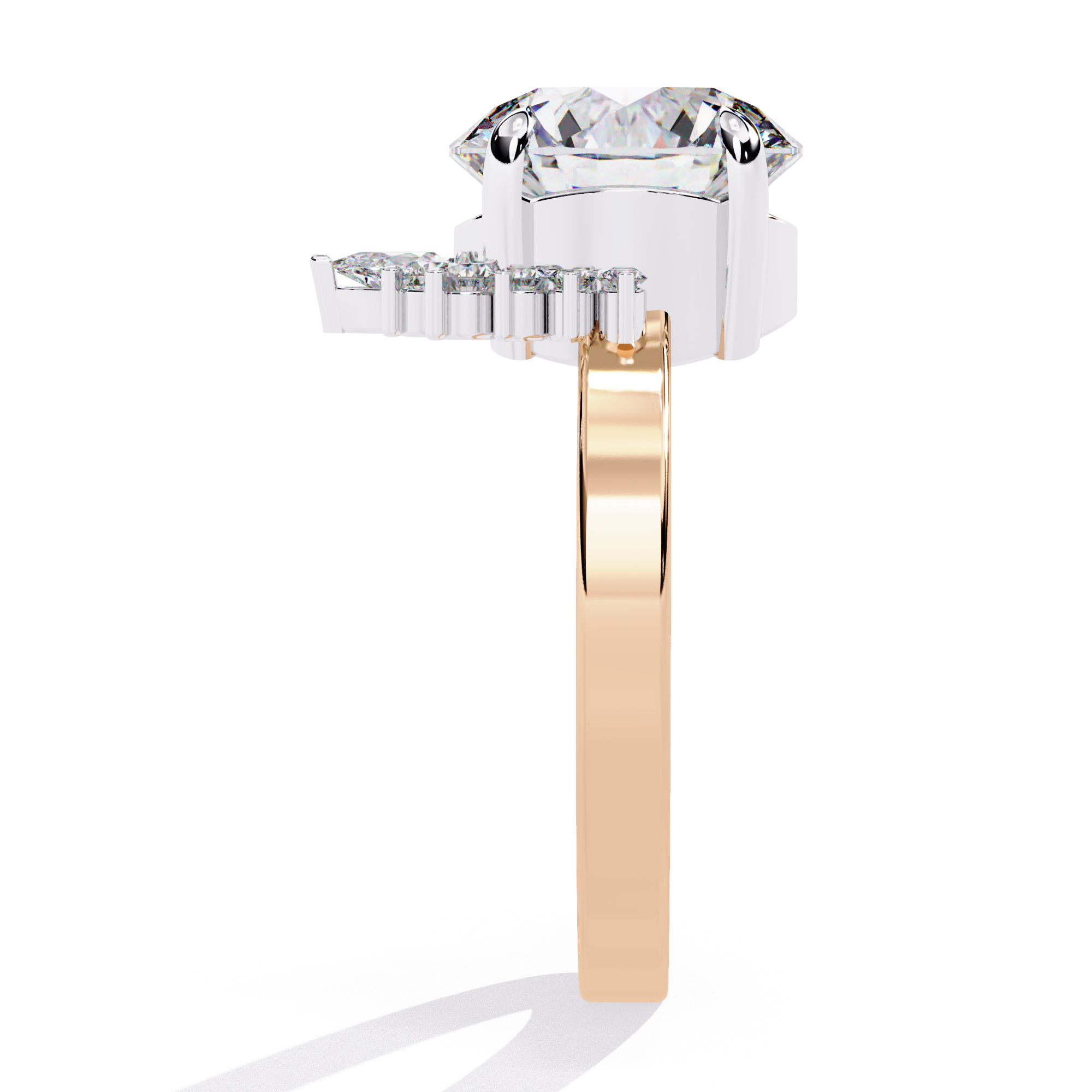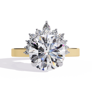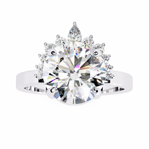 This 14K engagement ring features a radiant round center diamond surrounded by a stunning halo of smaller diamonds, creating a captivating brilliance from every angle. The elegant band enhances the sparkle, making it an ideal choice for modern brides who appreciate timeless sophistication and luxurious craftsmanship.
