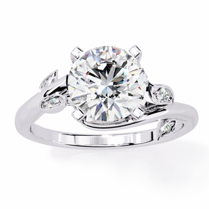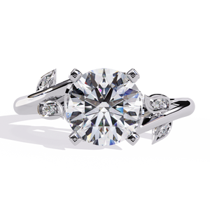 Reverra 14K Round Diamond Engagement Ring Leaf Design, CTTW-1.74