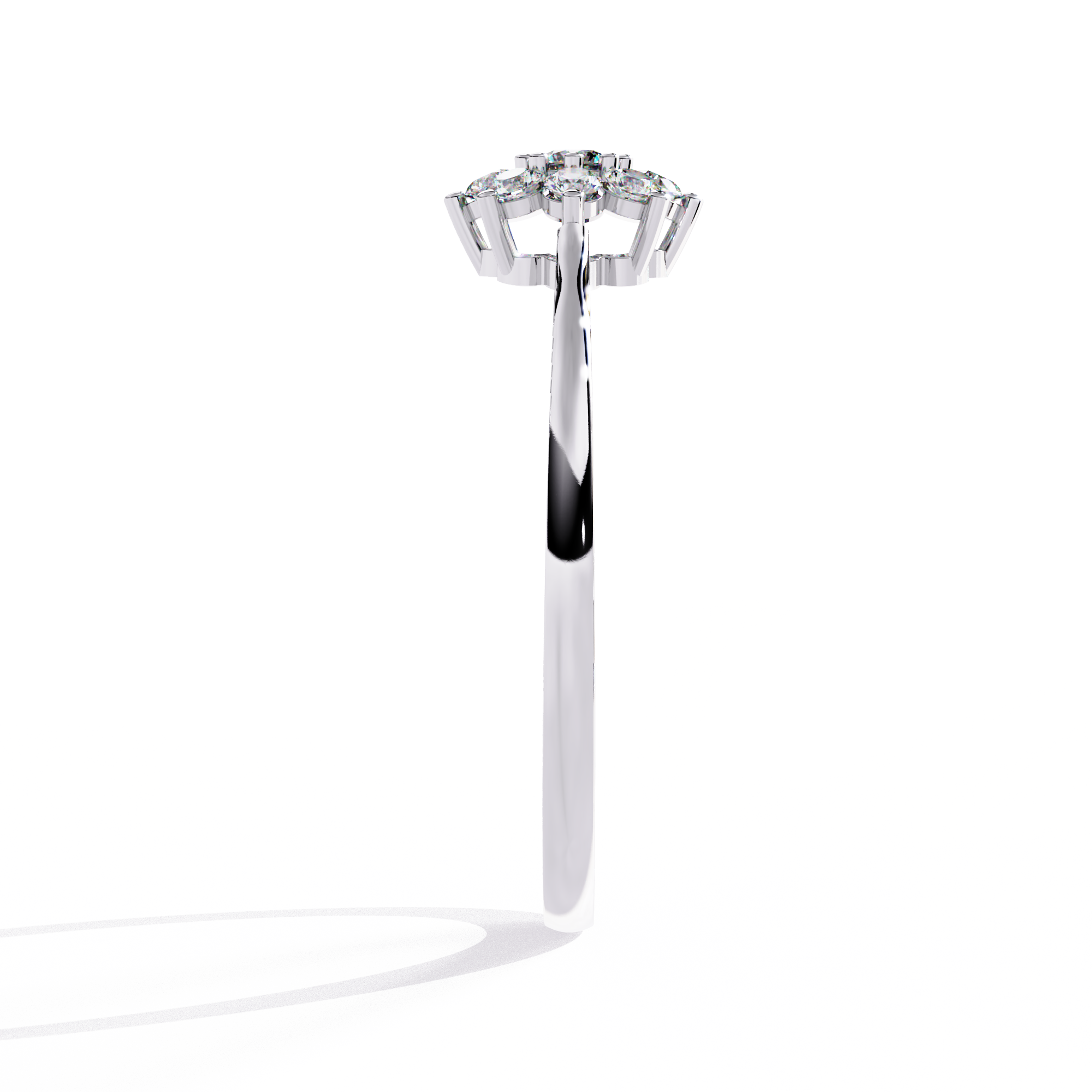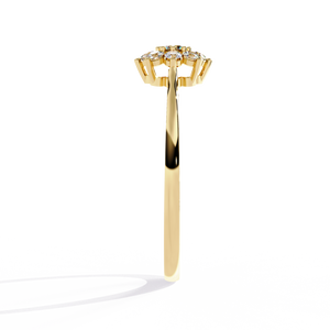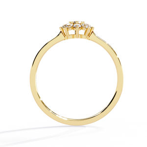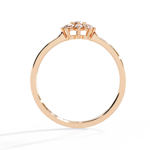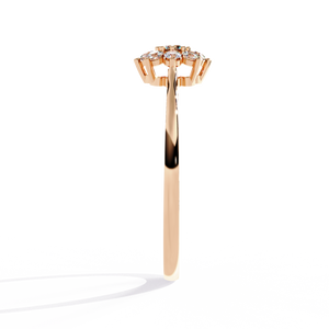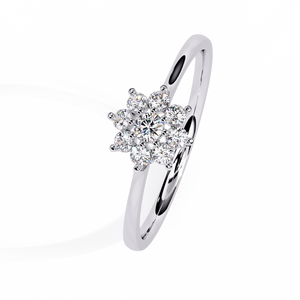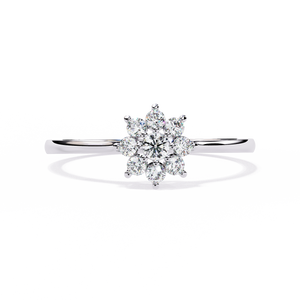 A delicate 14K diamond ring featuring a stunning floral cluster of round brilliant diamonds that radiate timeless charm. The sleek band enhances the flower-like sparkle, making it perfect for both everyday wear and special occasions.