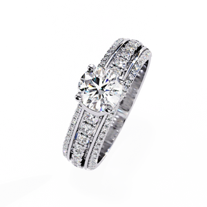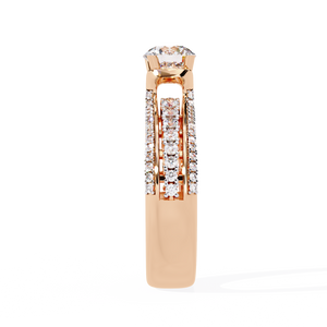 This 14K Round Diamond Triple Row Engagement Ring radiates bold brilliance with a striking round center diamond set atop three rows of pavé diamonds. The multi-band design adds depth and sparkle from every angle, making it a statement piece of luxury and modern sophistication for your forever moment.