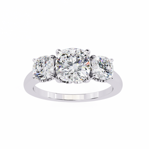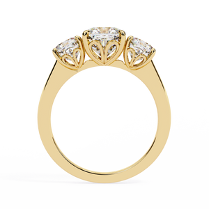 This 14K engagement ring showcases a timeless three-stone design symbolizing the past, present, and future. Featuring brilliant lab-grown diamonds in a graceful setting, the ring combines elegance and meaning making it a perfect choice for everlasting love.