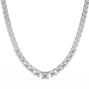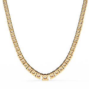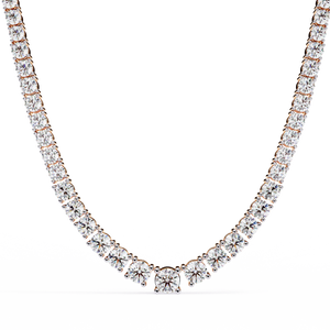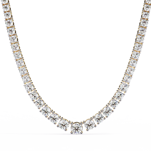 This 14K diamond tennis necklace showcases perfectly graduated round-cut diamonds that radiate pure brilliance. Crafted with precision, it transitions seamlessly from larger center stones to delicate sides — a timeless design that embodies elegance and sophistication.