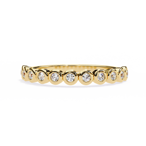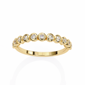 Sleek, refined, and effortlessly elegant this 14K Bezel Set Diamond Band is the epitome of modern sophistication. Each round brilliant-cut diamond is delicately enclosed in a smooth bezel setting, offering a secure hold and a clean, contemporary look. The continuous diamond pattern delivers radiant sparkle while maintaining everyday comfort. Perfect as a wedding band, anniversary ring, or stacking essential, this design is timelessly chic and beautifully understated.