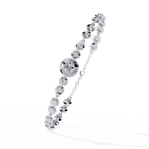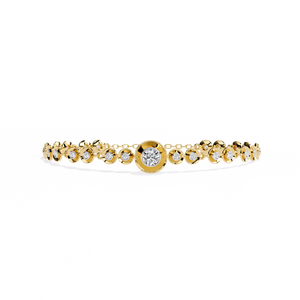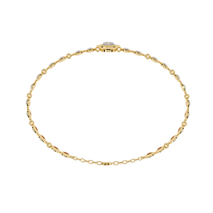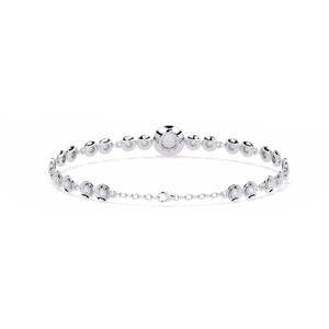 This refined 14K gold bracelet features bezel-set round diamonds arranged in a rhythmic pattern of polished discs. The graduated design draws attention to the central diamond, creating a graceful balance of modern simplicity and timeless brilliance ideal for daily wear or elegant evenings.