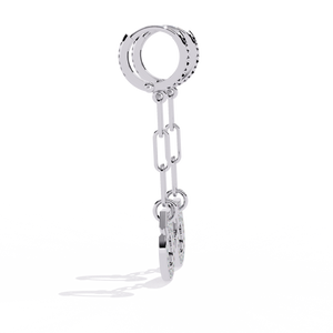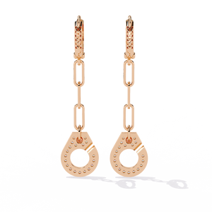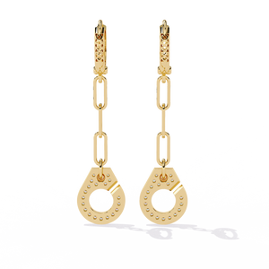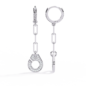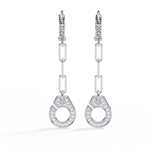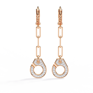 These 14K gold Diamond Drop Earrings feature a modern chain-link design ending in a pavé-set open circle charm. The geometric silhouette adds a bold yet elegant touch, blending contemporary style with radiant sparkle perfect for statement looks or evening wear.
