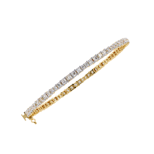 A timeless tennis bracelet showcasing perfectly aligned round diamonds for unmatched brilliance. Its sleek, minimal design embodies effortless sophistication, making it ideal for both daily wear and special occasions.