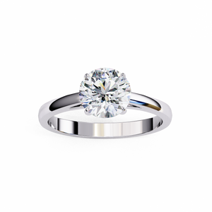 The epitome of timeless beauty this 14K white gold solitaire ring features a dazzling round brilliant diamond set in a classic four-prong setting. The design’s clean lines and smooth, high-polish band highlight the diamond’s natural brilliance, creating a look that’s both elegant and enduring. The slightly elevated setting allows for maximum light reflection, giving the stone exceptional fire and sparkle. A perfect choice for brides who value simplicity and sophistication.