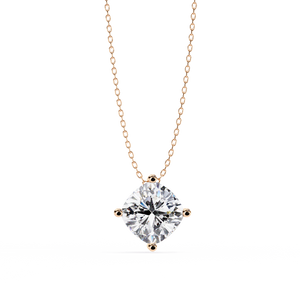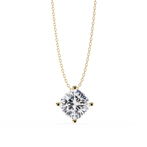 A cushion-cut diamond set gracefully in a sturdy four-prong design defines this 14K gold pendant. With its soft edges and dazzling facets, it exudes effortless elegance that never goes out of style.