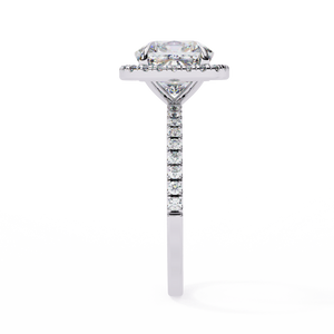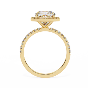 This 14K cushion halo diamond engagement ring sparkles with timeless elegance. The cushion-cut center diamond is surrounded by a dazzling halo that amplifies its brilliance, while the pavé band adds extra shimmer. A sophisticated design for those who adore classic romance with a modern edge.