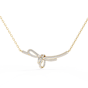 This 14K diamond bow fashion necklace showcases an elegant pavé-set diamond bow motif symbolizing grace and femininity. Delicately crafted in fine gold, it adds a luxurious sparkle to any look—perfect for both everyday wear and special occasions.