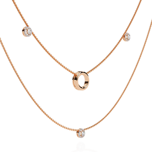 This 14K diamond circle layered necklace features a sleek double-chain design with bezel-set diamonds and a polished open-circle centerpiece. Its minimal elegance makes it ideal for layering or wearing alone for a refined modern look.
