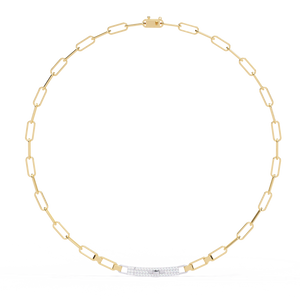 This 14K diamond paperclip tennis necklace combines classic sparkle with a bold, modern twist. The sleek paperclip chain design features a pavé-set diamond bar at the center, creating a perfect balance of sophistication and contemporary elegance.