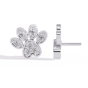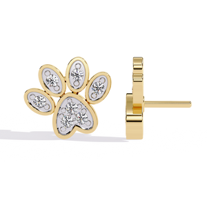 Celebrate your love for pets with these adorable 14K gold paw print studs. Sparkling diamonds accent each pad, adding charm and brilliance to the playful design. Crafted for everyday wear, these earrings blend cuteness with luxury perfect for animal lovers with a stylish side.