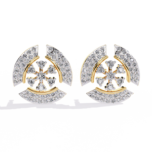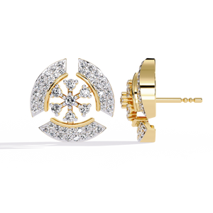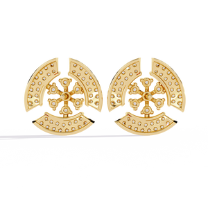 A radiant display of artistry, these 14K gold studs feature a mesmerizing snowflake-inspired pattern surrounded by shimmering halos of diamonds. The dual-layer design creates captivating brilliance from every angle perfect for adding a modern yet timeless sparkle to your look.
