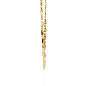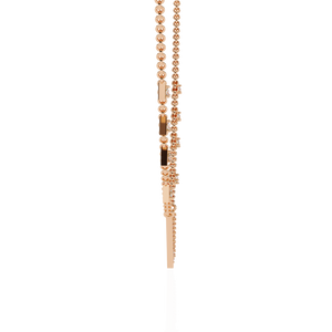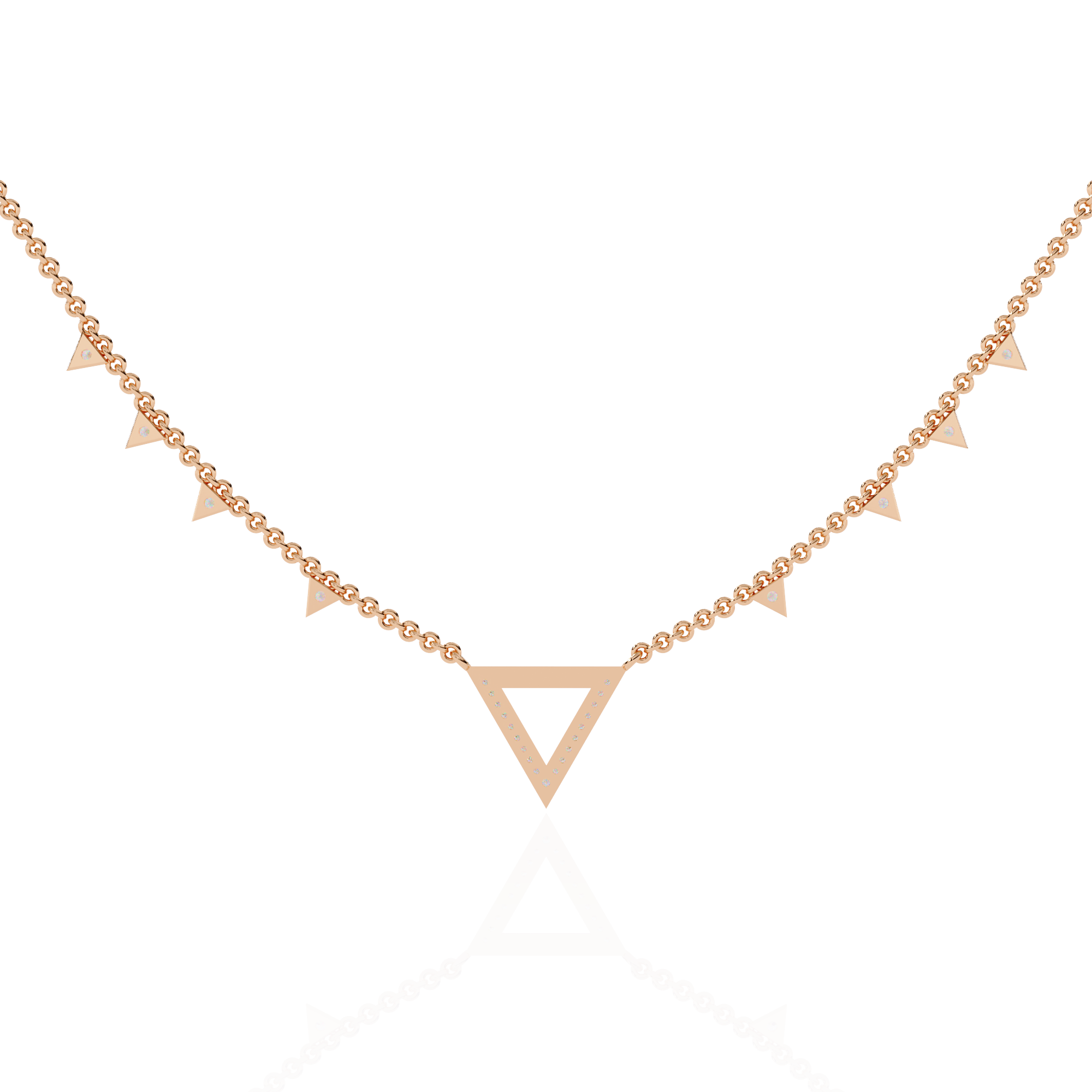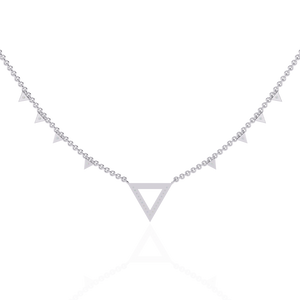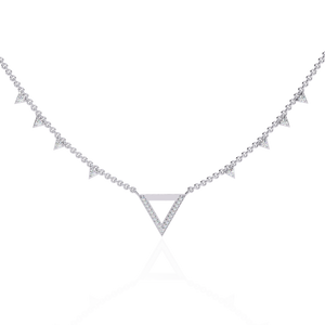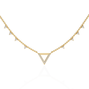 This 14K diamond V motif fashion necklace features a sleek geometric triangle centerpiece with shimmering pavé-set diamonds along the chain. Its bold, modern silhouette adds a statement edge to everyday elegance.