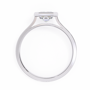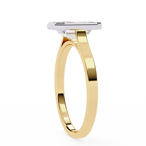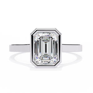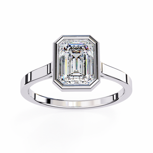 A bold expression of sophistication, this 14K white gold engagement ring showcases a striking emerald-cut diamond in a sleek bezel setting. The geometric edges and minimalist band highlight the diamond’s natural symmetry and clarity, offering a modern take on timeless beauty. Perfect for those who appreciate clean lines and understated luxury.