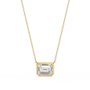 A refined 14K gold emerald-cut diamond pendant in a luminous bezel setting. Suspended on a delicate chain, it captures the light beautifully an ideal gift for those who appreciate understated luxury.