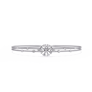 This graceful 14K gold bracelet features a dainty floral diamond charm at its center, beautifully paired with a dual-chain design. The scattered bezel-set diamonds add a soft shimmer, creating a perfect balance of delicacy and radiance. A charming everyday accessory with timeless allure.