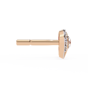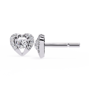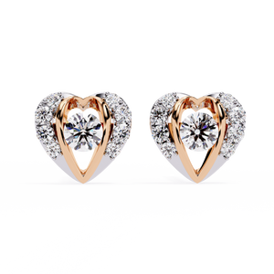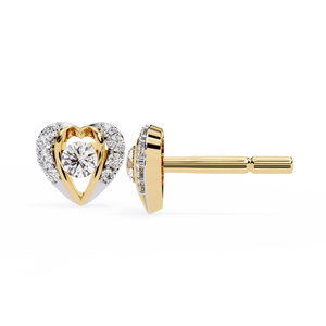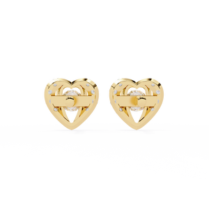 Crafted in 14K gold, these romantic heart-shaped diamond studs feature a brilliant round center stone embraced by a dazzling halo. The unique open-heart design adds depth and charm, making them a timeless expression of love and elegance.