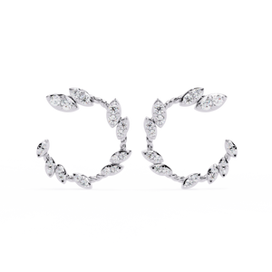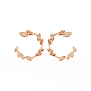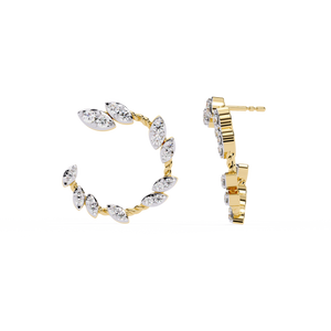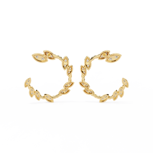 Inspired by nature, these 14K gold diamond Studs feature elegant marquise-shaped diamonds in a delicate leaf pattern. The open-hoop design exudes grace and sparkle from every angle, making them a refined statement piece for any occasion.