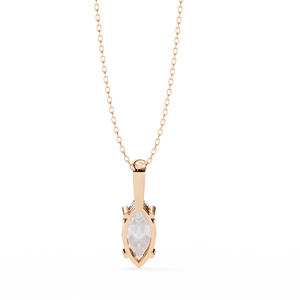 Crafted with precision, this 14K pendant showcases a marquise-cut diamond that gleams from every angle. Ideal for layering or wearing solo, it blends modern charm with timeless allure.