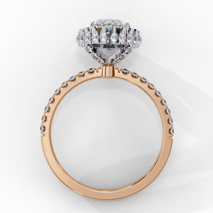 This elegant 14K engagement ring features a striking marquise-cut center diamond, framed by a radiant double halo of perfectly matched round diamonds. The layered halo enhances the marquise’s natural elongation, adding depth and brilliance from every angle. A slim pave-set band continues the sparkle seamlessly around the shank, creating a look of refined luxury. The dual-tone finish balances warmth and luminosity, making this design a captivating expression of timeless romance and modern sophistication.