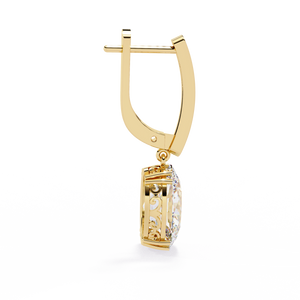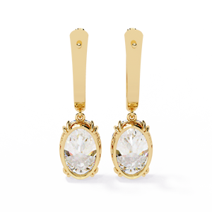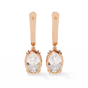 These 14K gold Diamond Lever Back Earrings showcase an elegant oval solitaire diamond held in a secure 6-prong setting. Featuring intricate filigree detailing on the side, they offer timeless sophistication and comfort perfect for both formal and everyday wear.