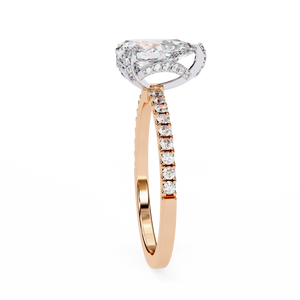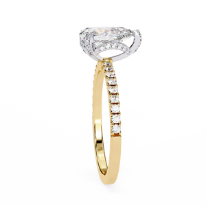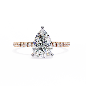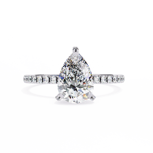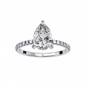 This 14K pear-cut diamond engagement ring combines classic elegance with modern refinement. The brilliant pear-shaped center diamond sits gracefully atop a sparkling pave band, designed to maximize brilliance from every angle. Crafted with precision and sophistication, this ring embodies romance, luxury, and timeless beauty perfect for an unforgettable proposal.