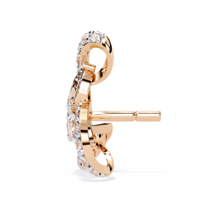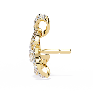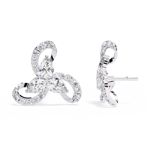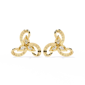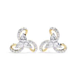 These 14K gold triswirl stud earrings feature three pear-shaped diamonds forming a radiant floral cluster, encircled by diamond-lined curves. The intricate swirl design symbolizes elegance and balance, making them a captivating statement of modern sophistication.