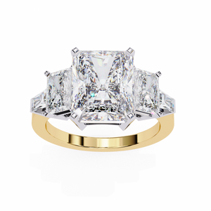 This 14K Radiant Cut Three-Stone Diamond Engagement Ring embodies grandeur and timeless elegance. The radiant-cut center diamond is flanked by two perfectly matched trapezoid side stones, creating an extraordinary balance of brilliance and symmetry. Set on a polished 14K white gold band, this luxurious design symbolizes past, present, and future love a breathtaking choice for the modern bride.