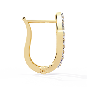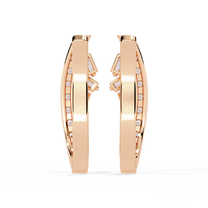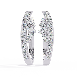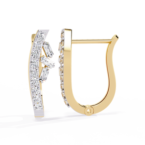 These elegant 14K gold lever back earrings feature a seamless blend of round and baguette diamonds in a graceful arrangement. The curved silhouette offers secure wear and sparkling sophistication, perfect for elevating both everyday elegance and evening allure.