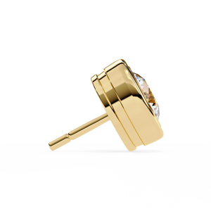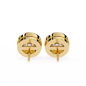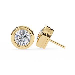 These sleek 14K gold diamond stud earrings feature a brilliant round diamond encased in a smooth bezel setting for a clean, modern look. The full-metal frame offers both elegance and security while accentuating the diamond’s sparkle. Designed for comfort and timeless wear, these studs are a perfect blend of sophistication and simplicity.