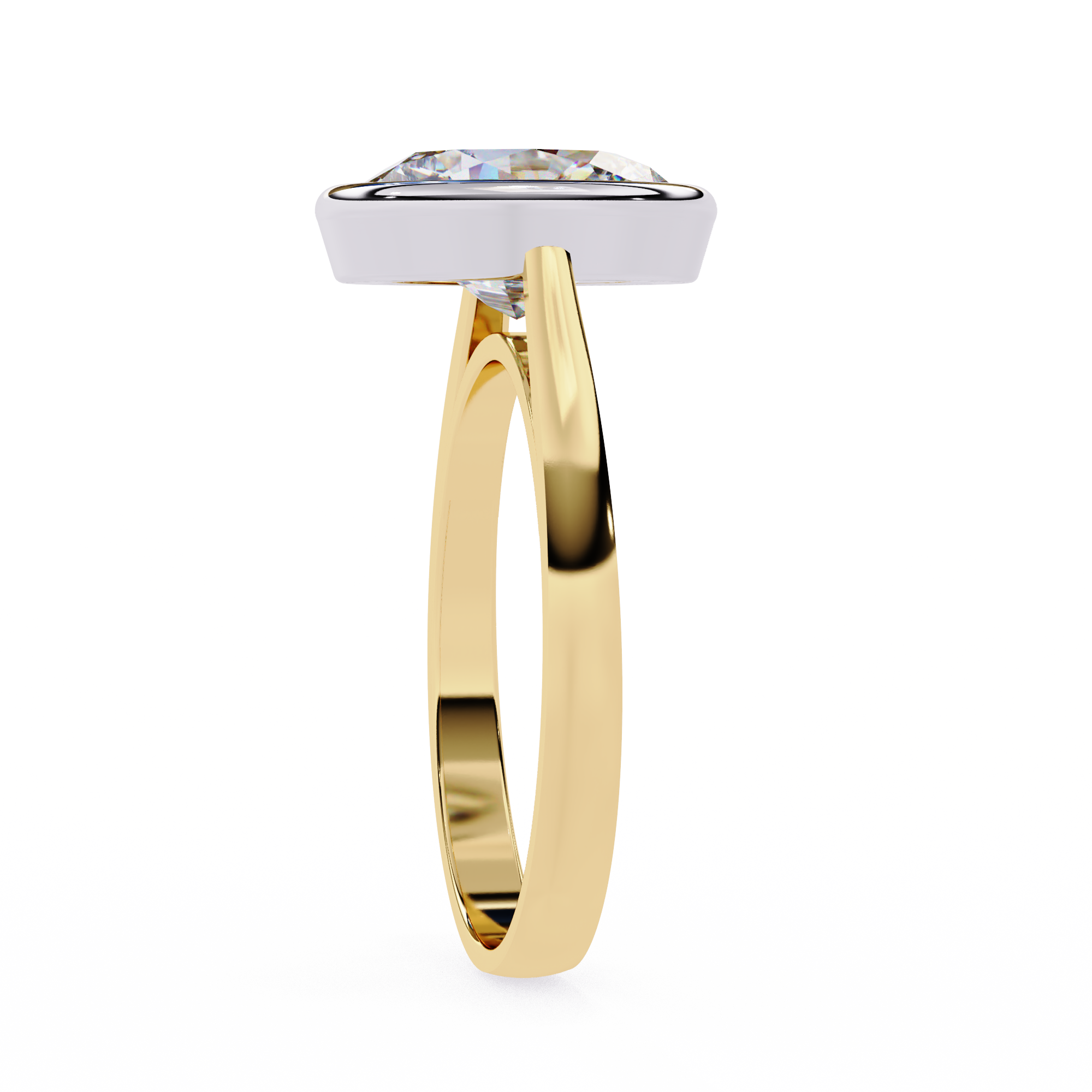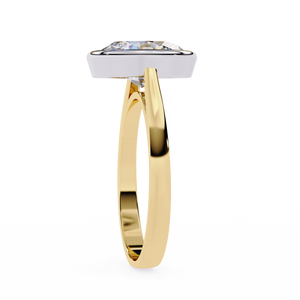 This 14K diamond engagement ring features a stunning round-cut center diamond in a sleek bezel setting, offering a modern and secure design. The smooth metal frame enhances the stone’s brilliance while maintaining a minimalist, elegant aesthetic. Perfect for brides who appreciate simplicity, durability, and timeless sophistication in a contemporary style.