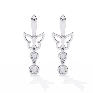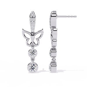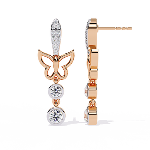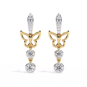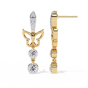 A symbol of grace and transformation, these 14K gold butterfly drop earrings showcase round diamonds in secure 4-prong settings. The delicate open-wing motif flows into bezel-set drops, creating a light, whimsical sparkle that enhances both festive and everyday looks.