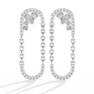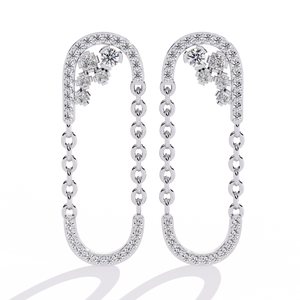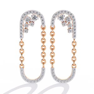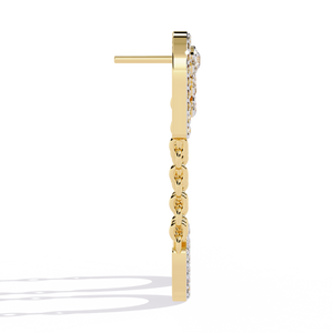 Grace meets glamour in these 14K gold diamond chain drop earrings, featuring a stunning round diamond centerpiece. The delicate linked design adds soft movement, while the pavé diamond accents create a captivating sparkle perfect for evening wear or elegant events.