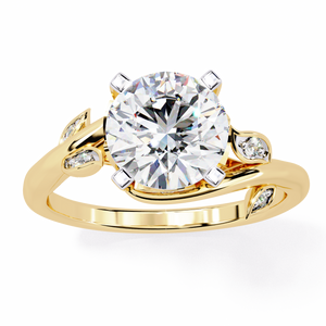 This 14K engagement ring blends nature-inspired beauty with modern craftsmanship. A brilliant round diamond sits elegantly at the center, accented by delicate leaf-shaped details and sparkling side stones. Its graceful design symbolizes growth, love, and new beginnings perfect for brides who adore timeless elegance with an organic touch.