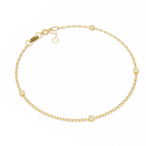This 14K gold diamond flexi bracelet features a minimal bezel-set round diamond design along a sleek, flexible chain. Its refined silhouette offers effortless elegance, making it ideal for stacking or everyday sophistication.