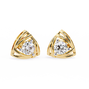 These 14K gold interwoven basket studs feature a brilliant round diamond securely held in a refined 4-prong setting. The intricate openwork design enhances light reflection, adding sophistication and sparkle to your look perfect for daily wear or elegant evenings.