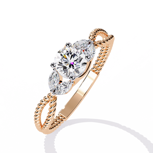 This 14K Round Diamond Marquise Side Engagement Ring blends classic elegance with a modern twist. Featuring a brilliant round center diamond accented by two marquise side stones, it sits on a unique twisted rope-style band for added charm and texture. A perfect ring for those who appreciate refined beauty with a touch of individuality.
